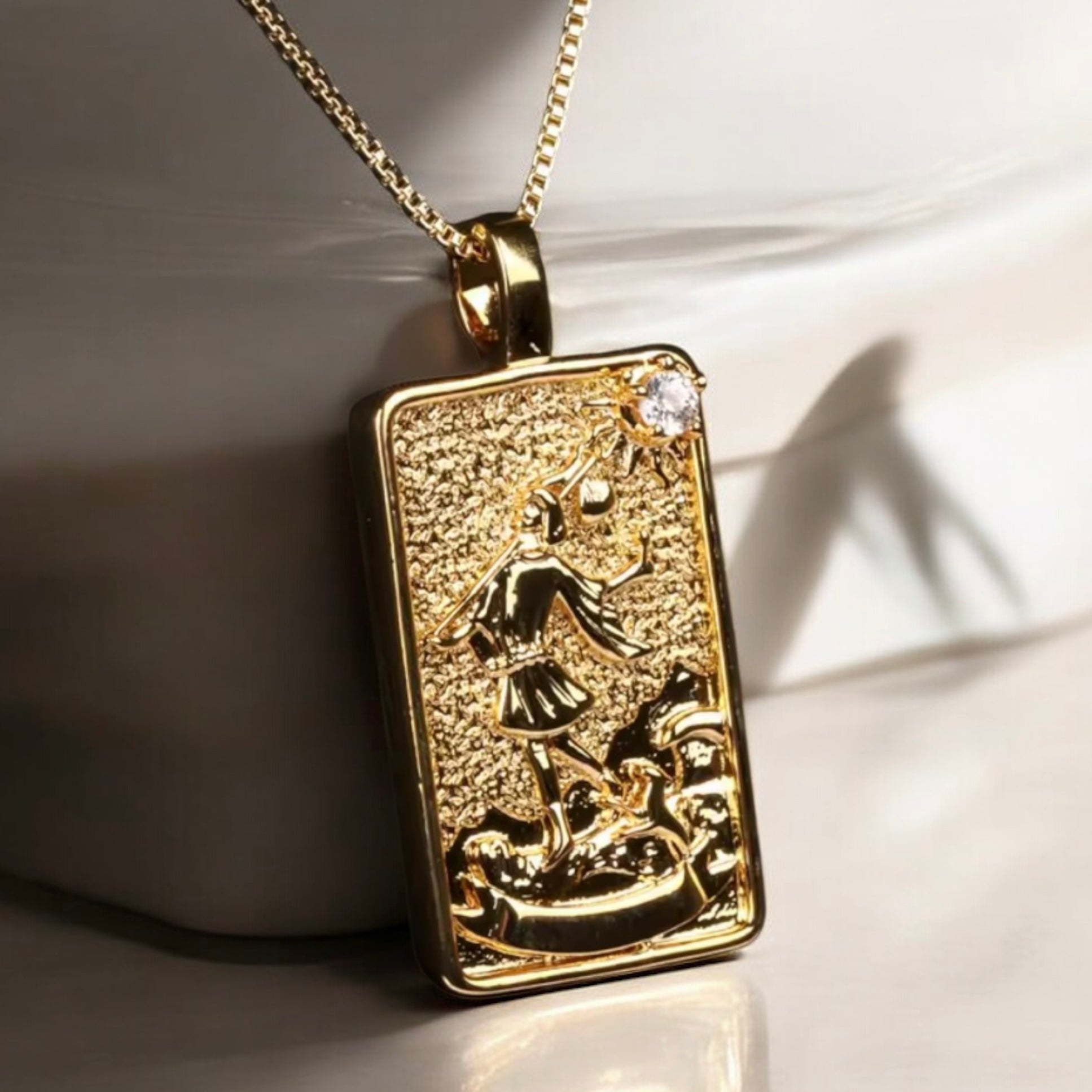 Infused with meaning and coated in radiant 14k gold, our Tarot Necklaces are crafted with a copper core—chosen for its powerful energetic properties. While they are water-resistant, we recommend treating them with care to preserve their sacred shine and energy. For extra long lasting beauty, avoid exposing them to water, sweat, lotions, or perfume. When not being worn, store them in a dry, safe space and cleanse gently with a soft jewellery cloth to keep their golden aura glowing and their magic alive.