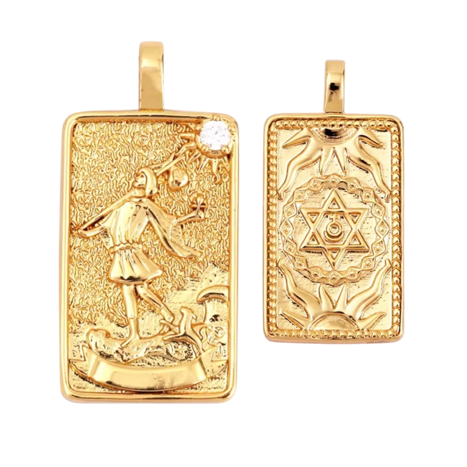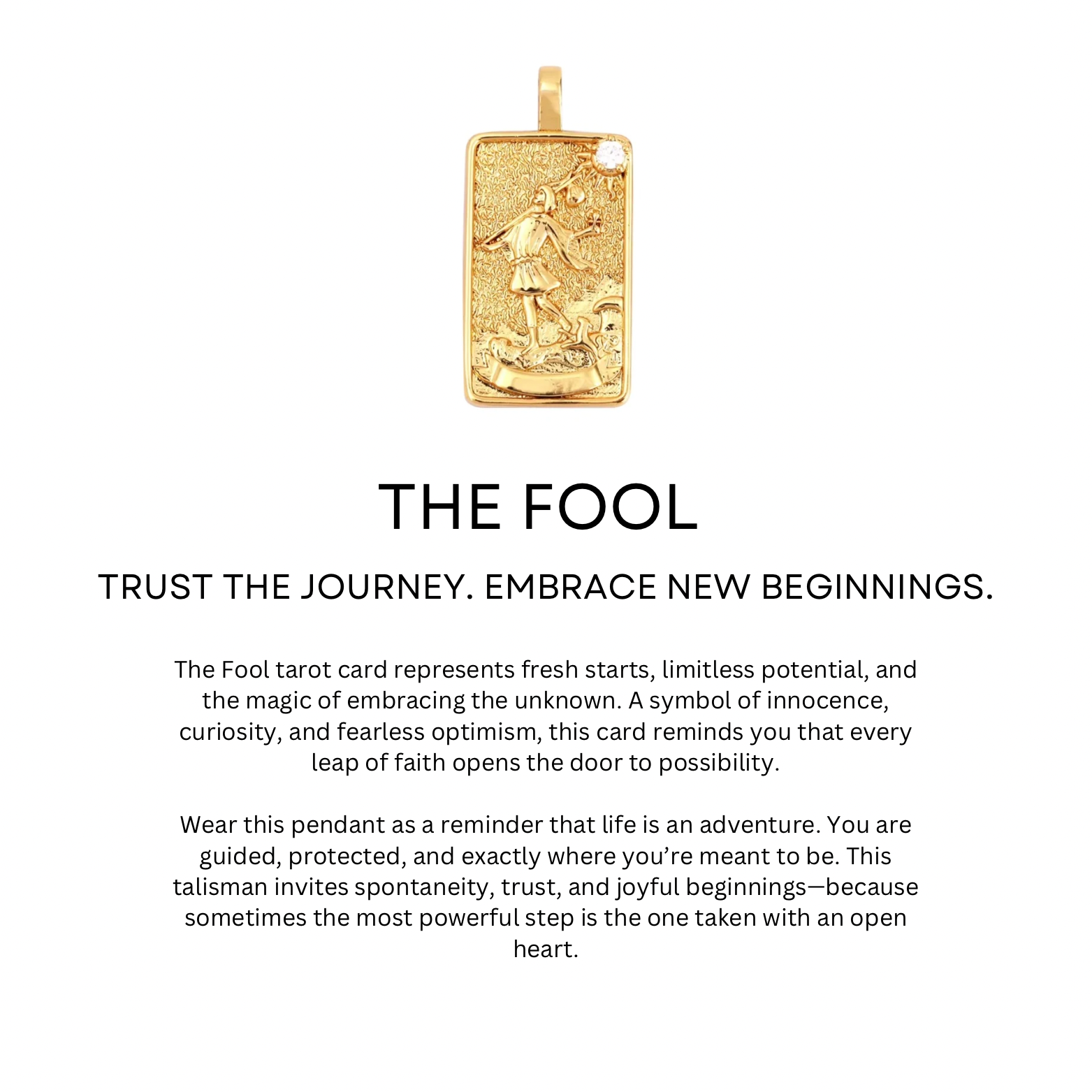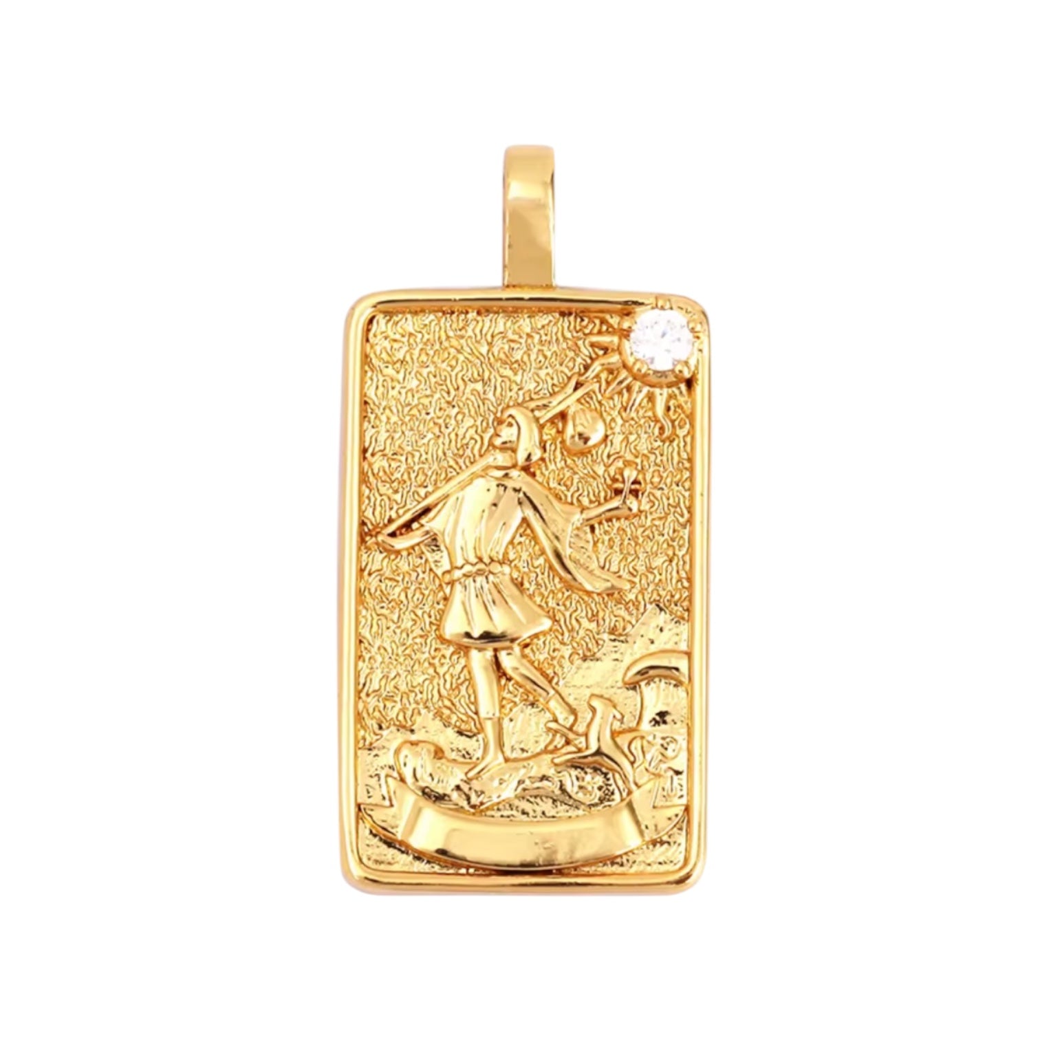 Handcrafted with intricate detail and plated in radiant 14K gold, The Fool pendant features a sparkling zircon to reflect the light within you. Whether you’re starting a new chapter, chasing a dream, or simply remembering to enjoy the moment, this necklace is your daily reminder to lead with curiosity, faith, and freedom.