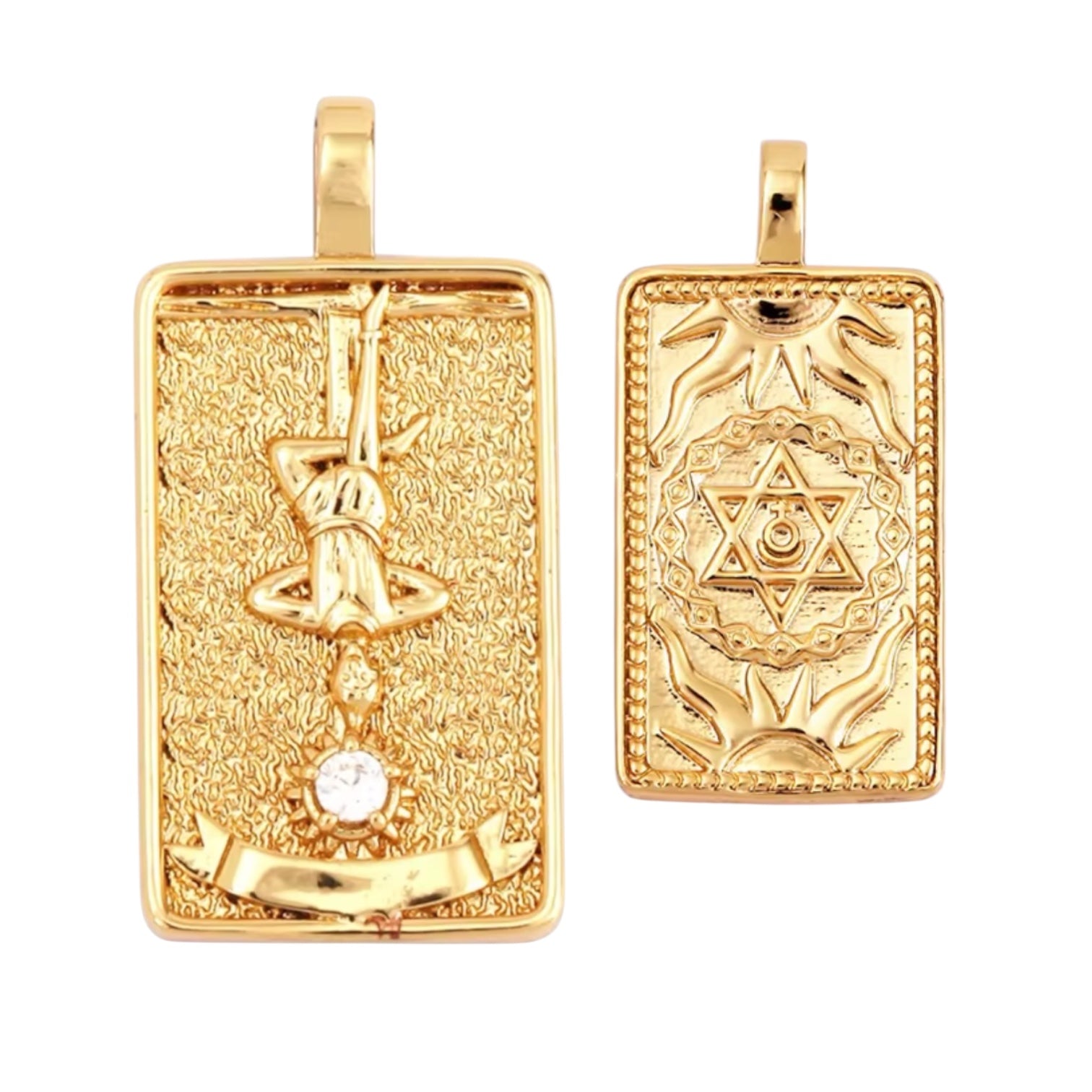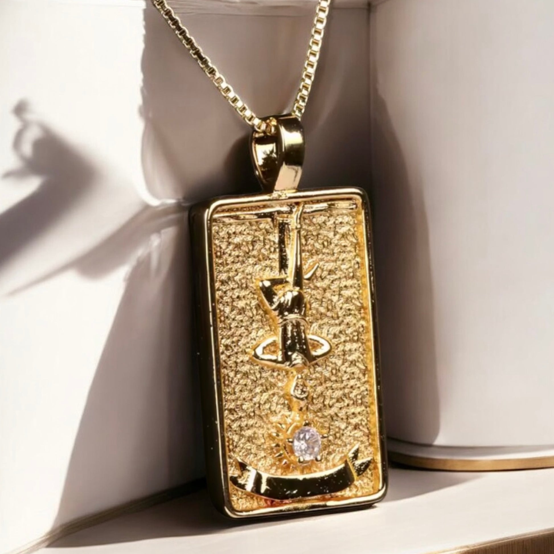 Dipped in radiant 14K gold and adorned with a luminous zircon, The Hanged Man pendant holds the energy of deep inner shifts and sacred stillness. Whether you’re in a season of letting go, shifting your mindset, or seeking clarity, this necklace is a reminder that true transformation often begins when we stop resisting and start trusting the divine flow.