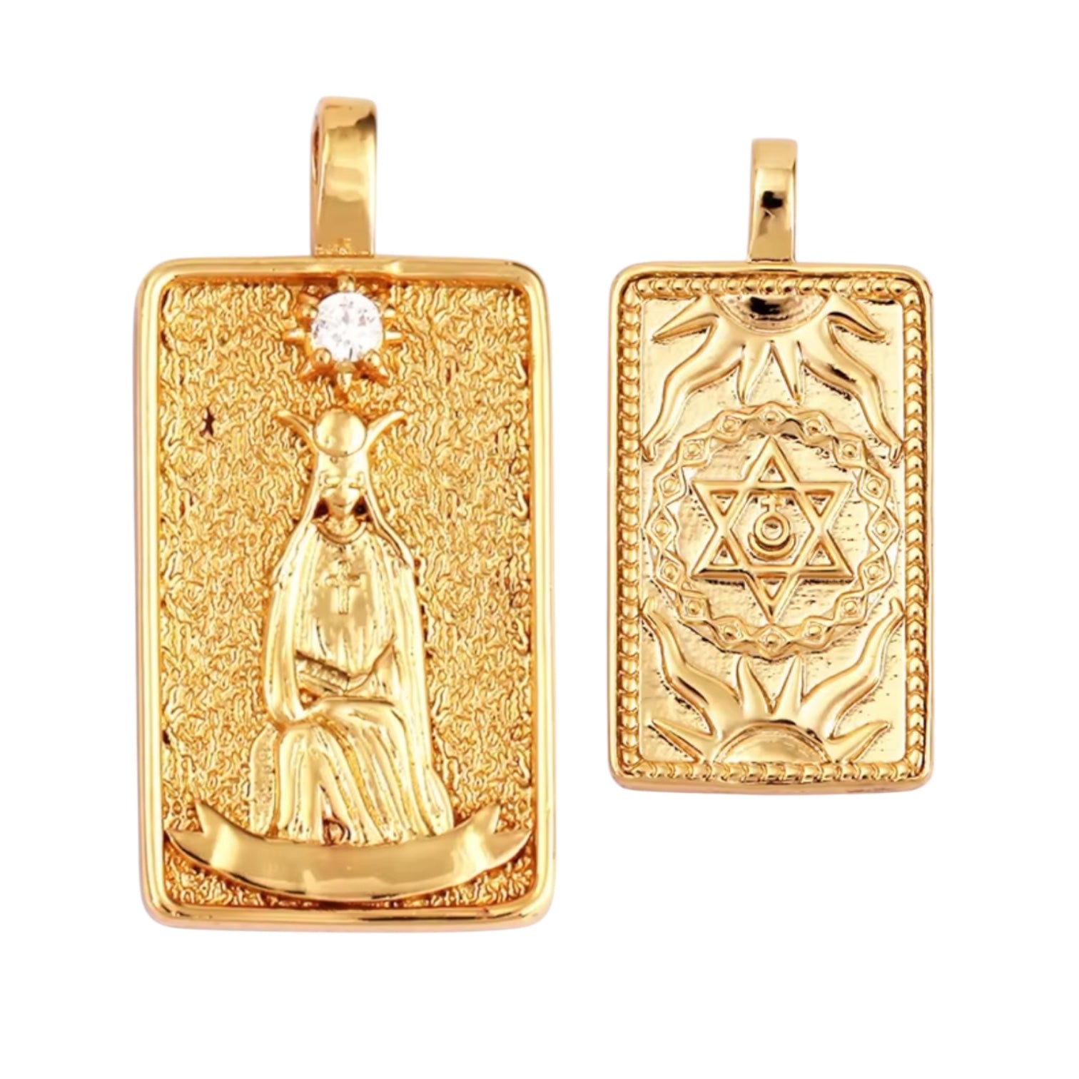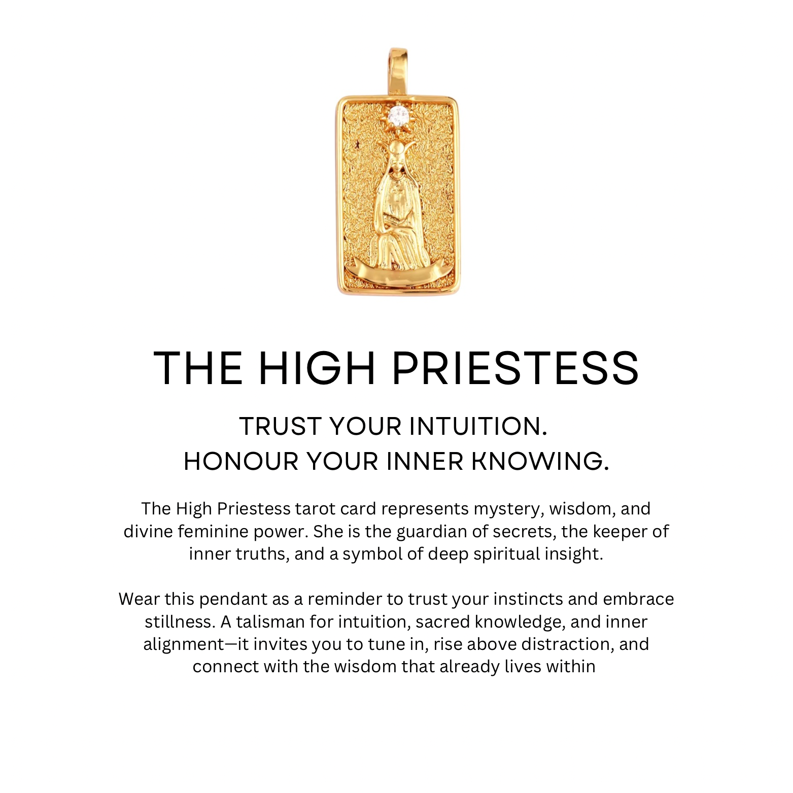 The High Priestess is a symbol of intuition, inner wisdom, and sacred mystery. She invites you to look inward, to trust the whispers of your soul, and to honour the magic that lives in stillness and silence. This pendant is for the seekers, the empaths, and the women who move through the world with quiet strength and deep knowing.