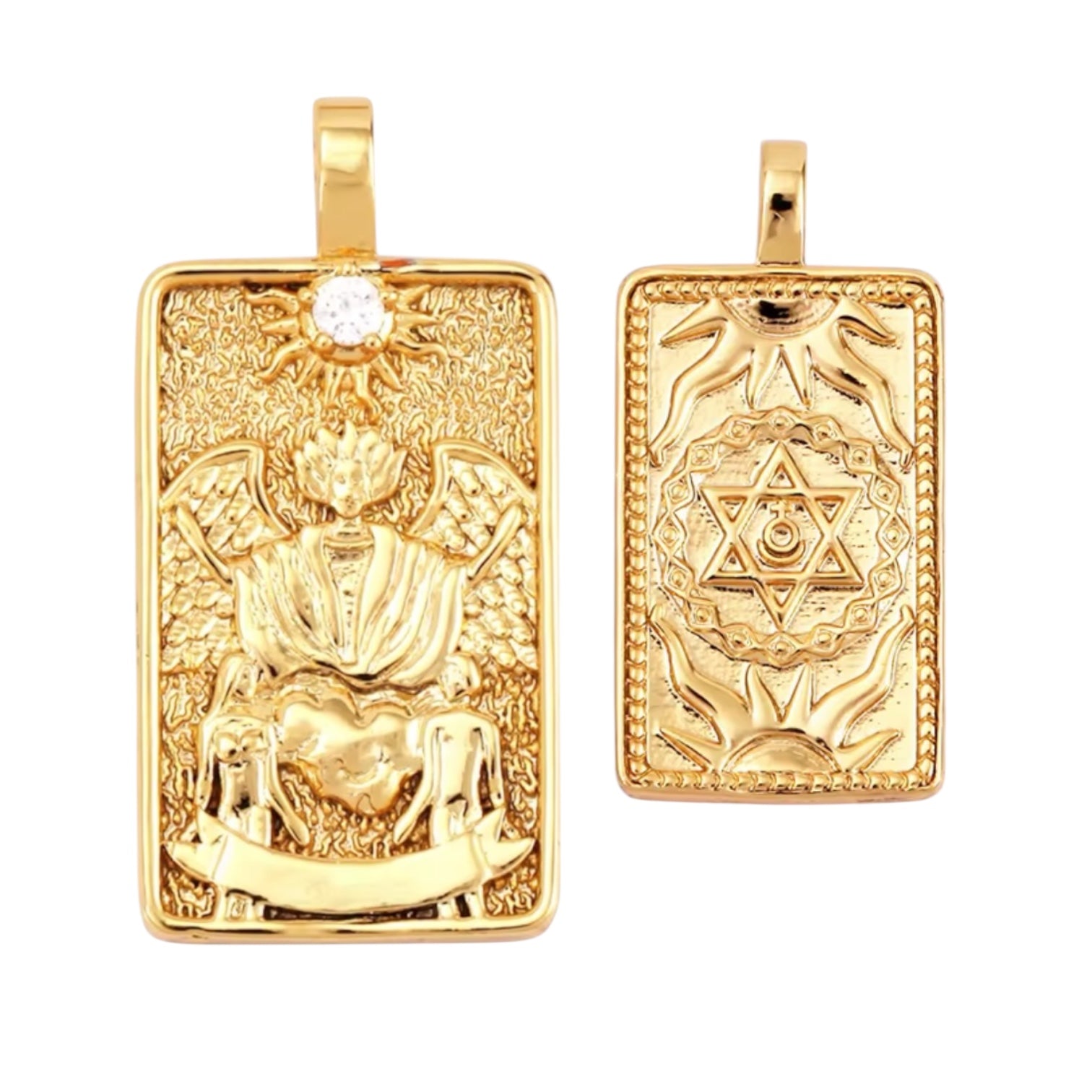 Infused with meaning and coated in radiant 14k gold, our Tarot Necklaces are crafted with a copper core—chosen for its powerful energetic properties. While they are water-resistant, we recommend treating them with care to preserve their sacred shine and energy. For extra long lasting beauty, avoid exposing them to water, sweat, lotions, or perfume. When not being worn, store them in a dry, safe space and cleanse gently with a soft jewellery cloth to keep their golden aura glowing and their magic alive.